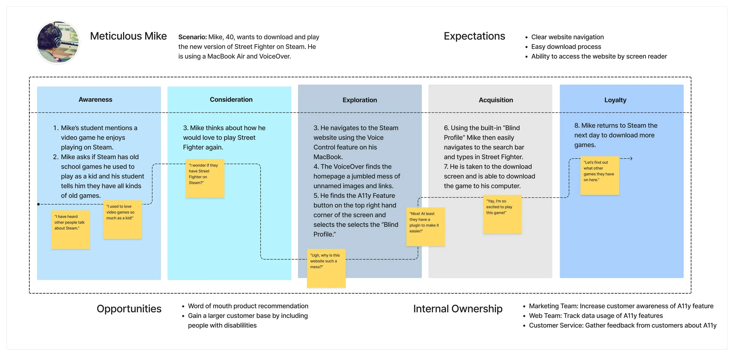 Mike, a 40-year-old math tutor, is legally blind and must use a screen reader to navigate the web. Mike loved to play games as a kid on the Nintendo and even had a Wii. Those games were accessible due to the larger graphics and keyboard control. Mike would like to download some classic games off of Steam, but is worried about the accessibility of the platform.
