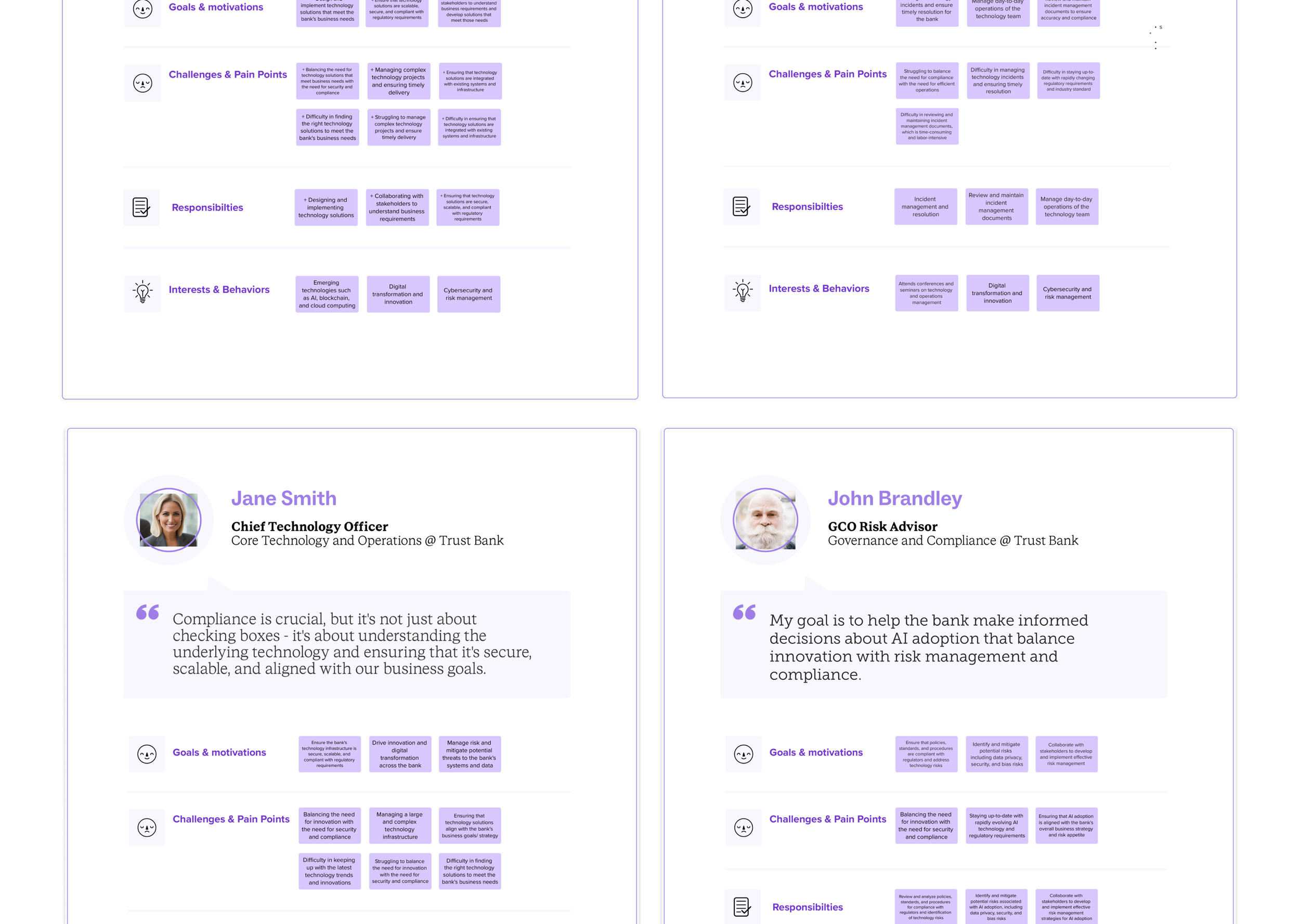 Created user flows showing how AI would analyze document content, flag misalignments, and suggest updates.